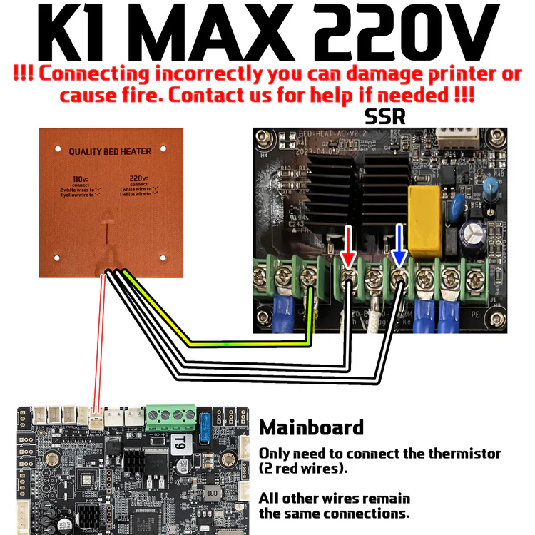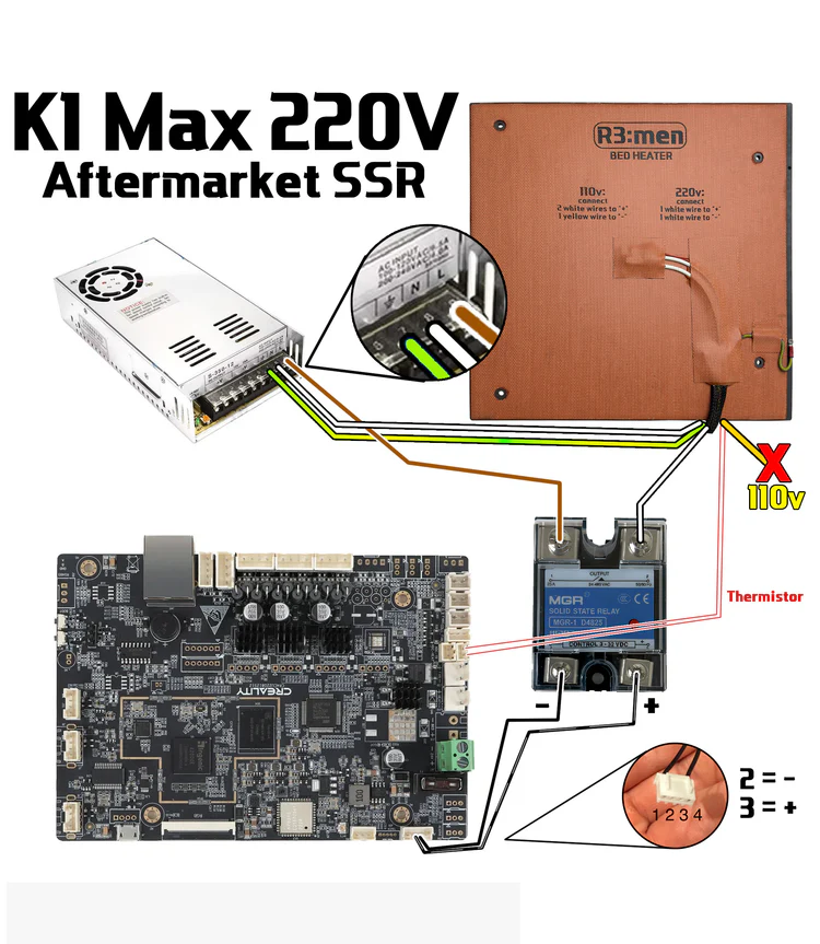 K1 Max already has an SSR so it is not included in the kit. Follow the pictures to connect it correctly.