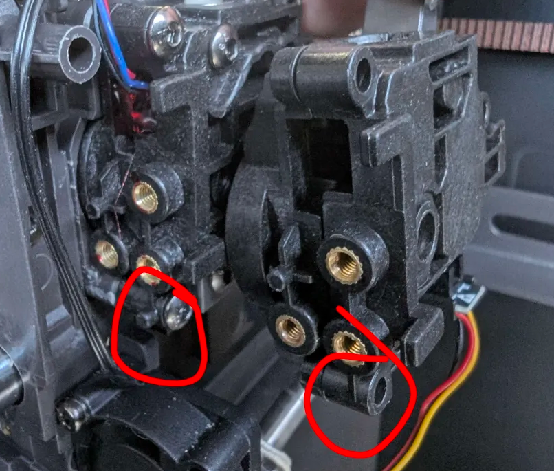 1. Use an S2.0 Allen key to tighten the screws that secure the extruder module.