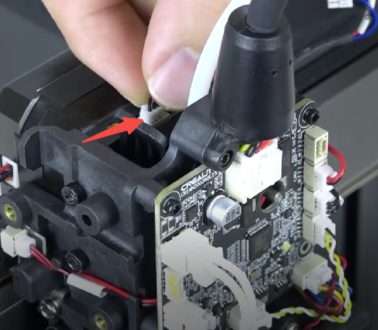 Attention: Heavy-Duty Yellow Adhesive: The connectors on the extruder are bonded with a powerful yellow adhesive. To detach them, you may need to carefully cut or gently wiggle the connectors. Avoid applying excessive force, as this could damage both the extruder board and the cable. Additionally, using some isopropyl alcohol may help to weaken the adhesive.